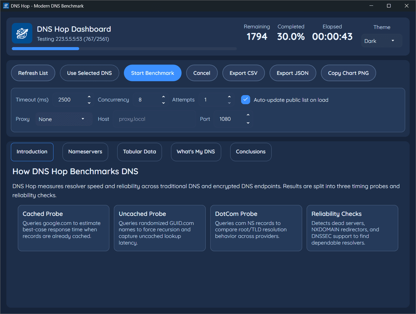 DNS Hop – бесплатная программа для анализа и выбора оптимального DNS-сервера для текущего интернет-подключения. Утилита предназначена для проверки производительности различных DNS-провайдеров, с целью  определения наиболее быстрого и стабильного варианта подключения.