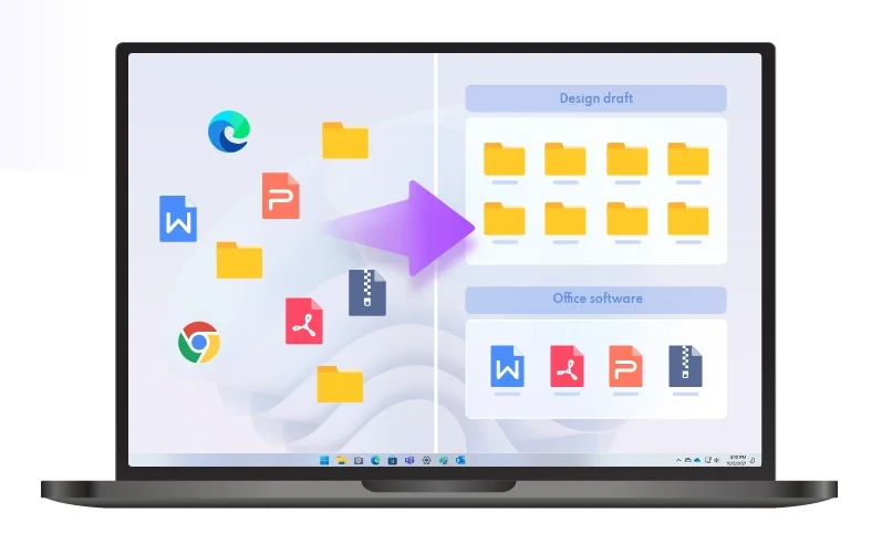 Данная программа предлагает удобный способ группировки различных типов данных: документов, папок, приложений, изображений и других файлов. Все элементы можно размещать в специальных блоках на рабочем столе, благодаря чему они становятся более систематизированными и легче доступны. Можно создавать несколько страниц рабочего пространства и переключаться между ними, что полезно при работе с большим количеством файлов.