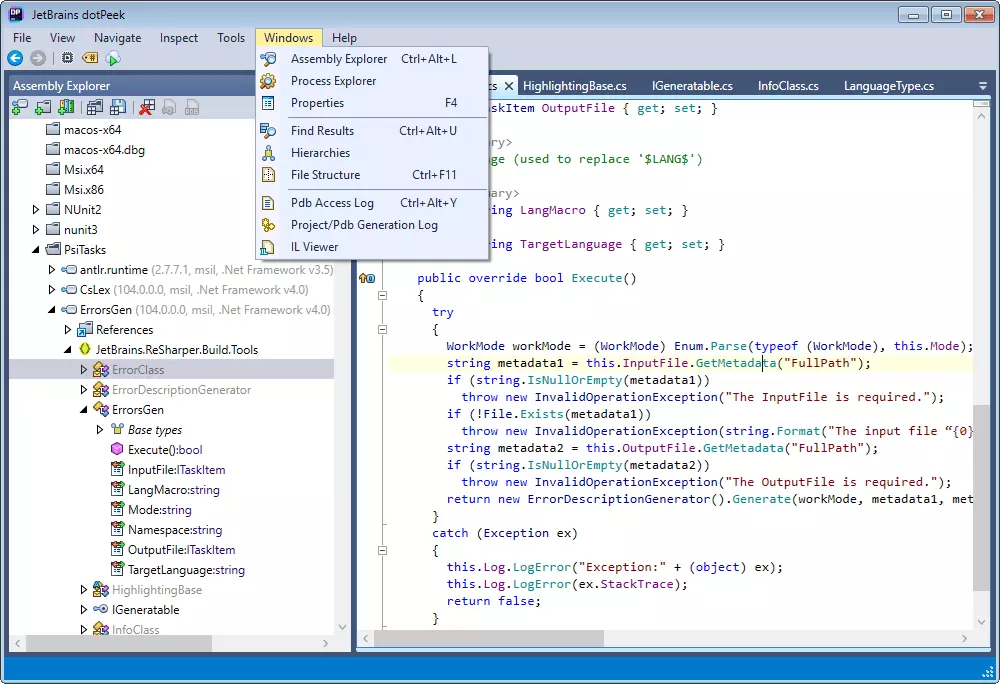 Основные возможности JetBrains dotPeek