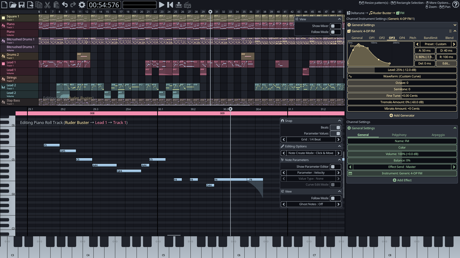 Основой работы в программе KiraStudio является полнофункциональный piano roll, который позволяет создавать и редактировать нотные партии, управлять параметрами нот, такими как скорость, панорамирование и длительность. Встроенный секвенсор даёт возможность добавлять новые каналы и треки, формировать паттерны и повторно использовать их в композиции. Для настройки звучания предусмотрен микшер, где можно регулировать громкость каналов, баланс и подключать цепочки эффектов для обработки аудио.