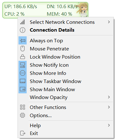Одной из ключевых особенностей программы TrafficMonitor является плавающее окно, которое может располагаться поверх других приложений и отображать актуальные параметры работы системы, что особенно удобно при работе с сетью, загрузке файлов, онлайн-видео или во время тестирования производительности. Дополнительно программа может интегрироваться в панель задач Windows, позволяя отслеживать сетевую активность и состояние ресурсов прямо из системного трея.