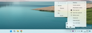 Программа интегрируется в панель задач и отображается в области уведомлений в виде небольшого значка. Управление осуществляется через компактное меню, которое предоставляет несколько режимов оформления панели задач: полная прозрачность, эффект размытия, полупрозрачный режим и цветная заливка. Пользователь может подобрать оптимальный вариант под собственные предпочтения. Дополнительно предусмотрена поддержка нескольких мониторов, что делает инструмент удобным для многодисплейных конфигураций.