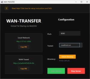 WAN-Transfer – компьютерная программа для организации удалённого обмена файлами через Интернет и локальные сети посредством протокола WebDAV, облегчает доступ к данным на устройстве для иных пользователей, независимо от их физического расположения и без надобности использовать облачные хранилища.