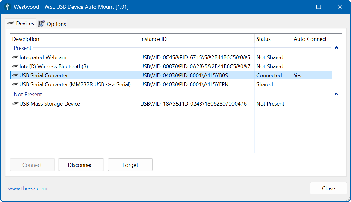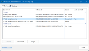 Один раз настроив устройство, пользователь может быть уверен, что при следующем подключении оно будет автоматически смонтировано в WSL 2. Программа позволяет вручную подключать и отключать устройства, а также управлять списком сохранённых устройств, при необходиомсти полностью удалить данных о них. Аналогичные функции доступны через контекстное меню в области уведомлений, что делает управление быстрым и удобным.