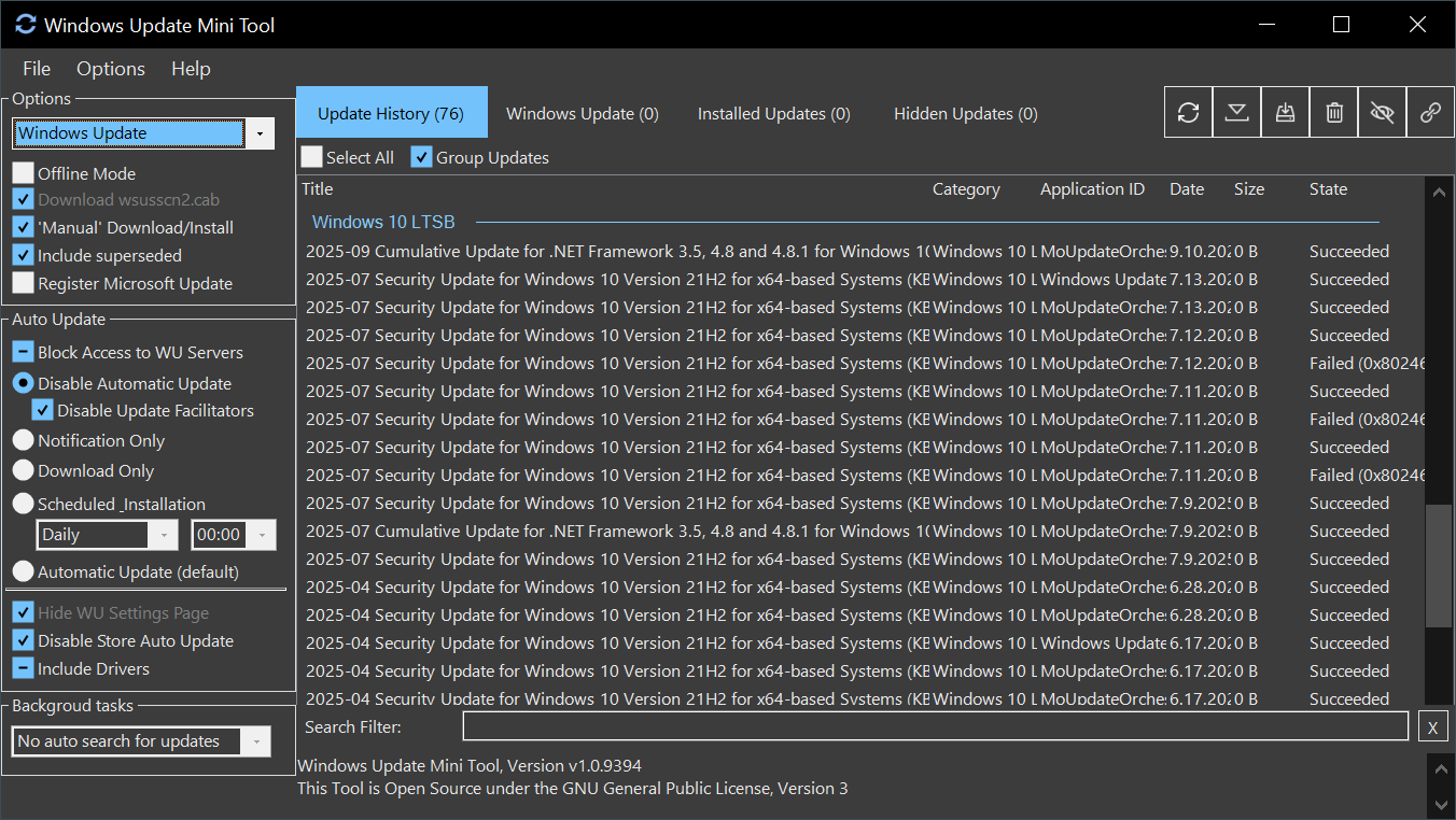 Программа Windows Update MiniTool проста в использовании и не требует установки. Работает под управлением операционных систем Microsoft Windows XP, Vista, 7, 8, 8.1, 10 и 11.