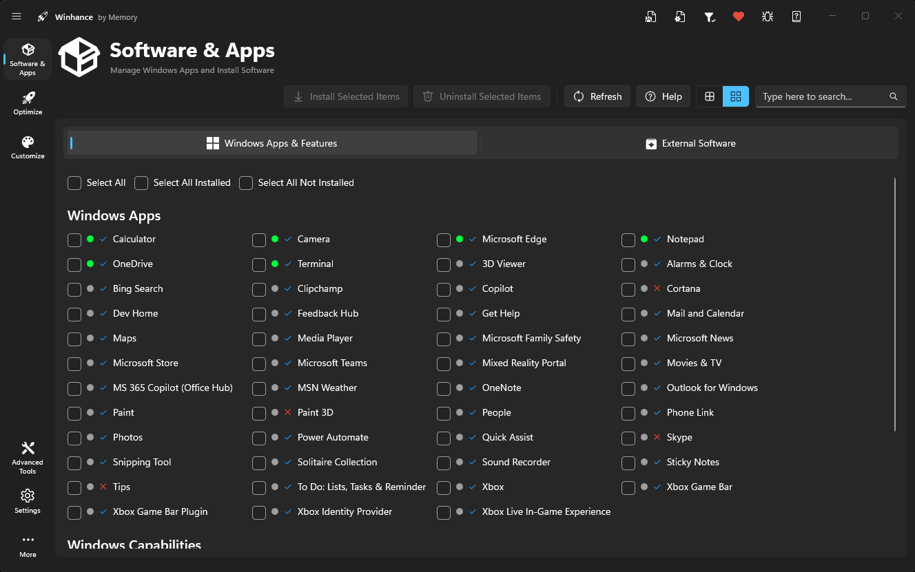 Winhance – бесплатная программа для управления установленными приложениями и компонентами Windows, помогает оптимизировать и настроить операционную систему.